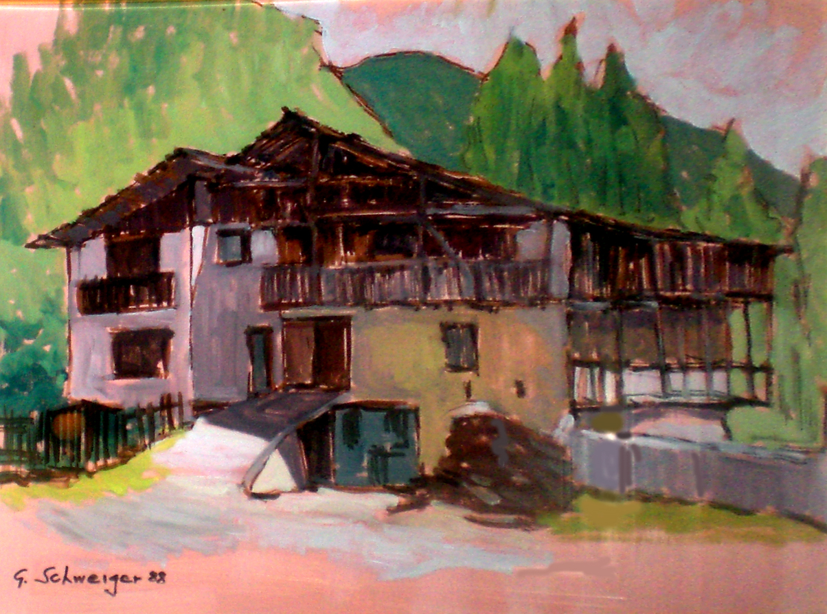 tabià a valle con fiori oilo 50x70 '88