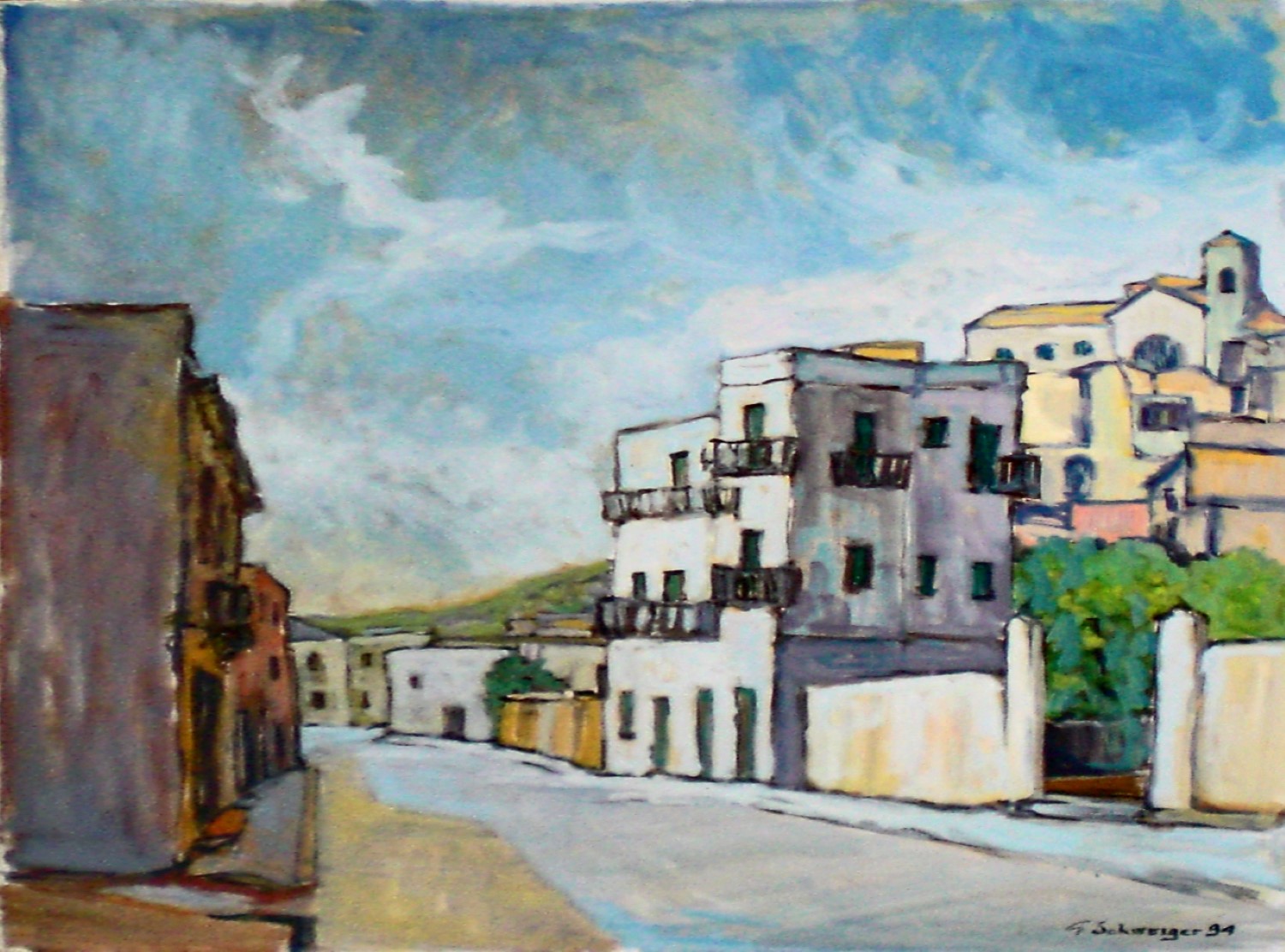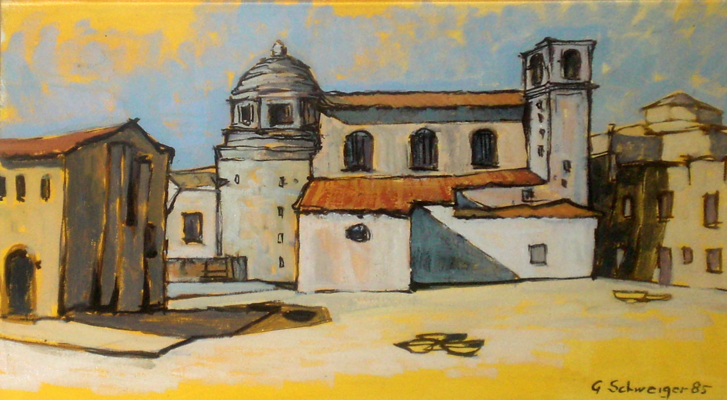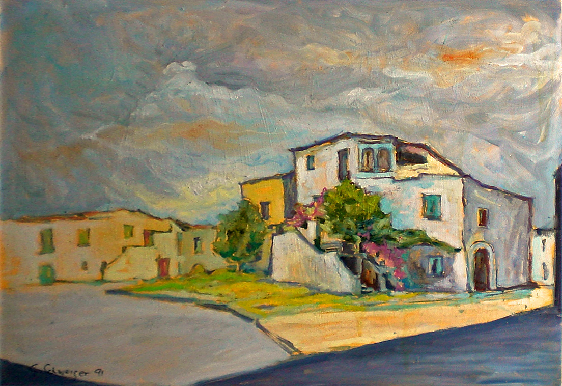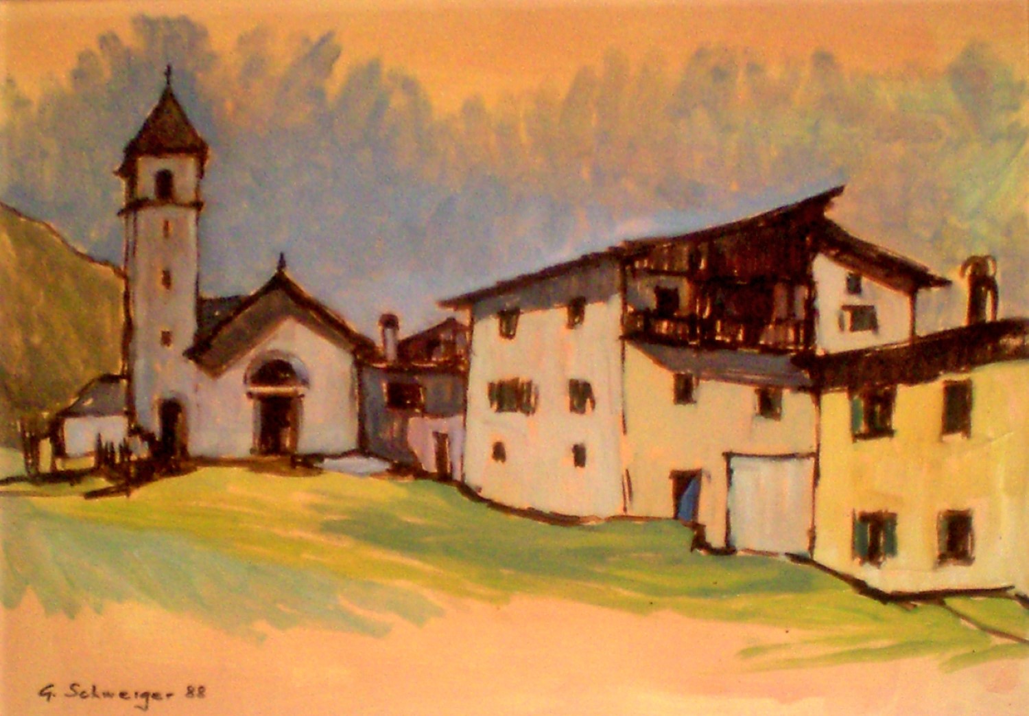 Case e chiesa a Zovalle olio '88
