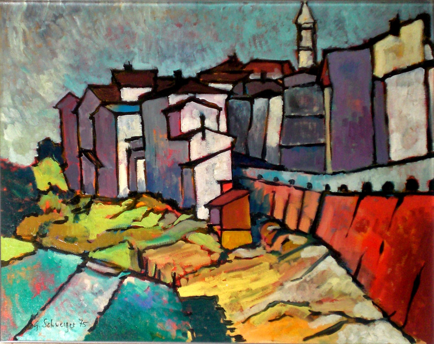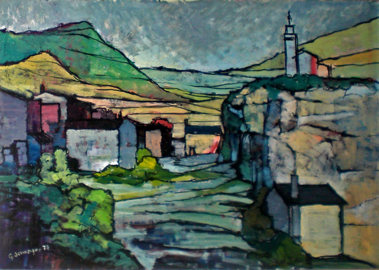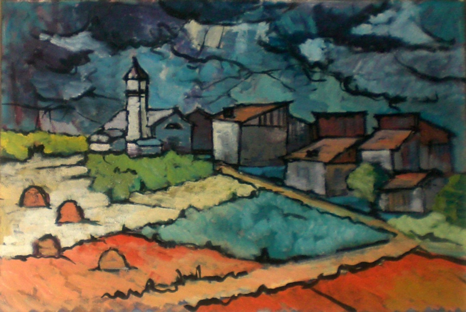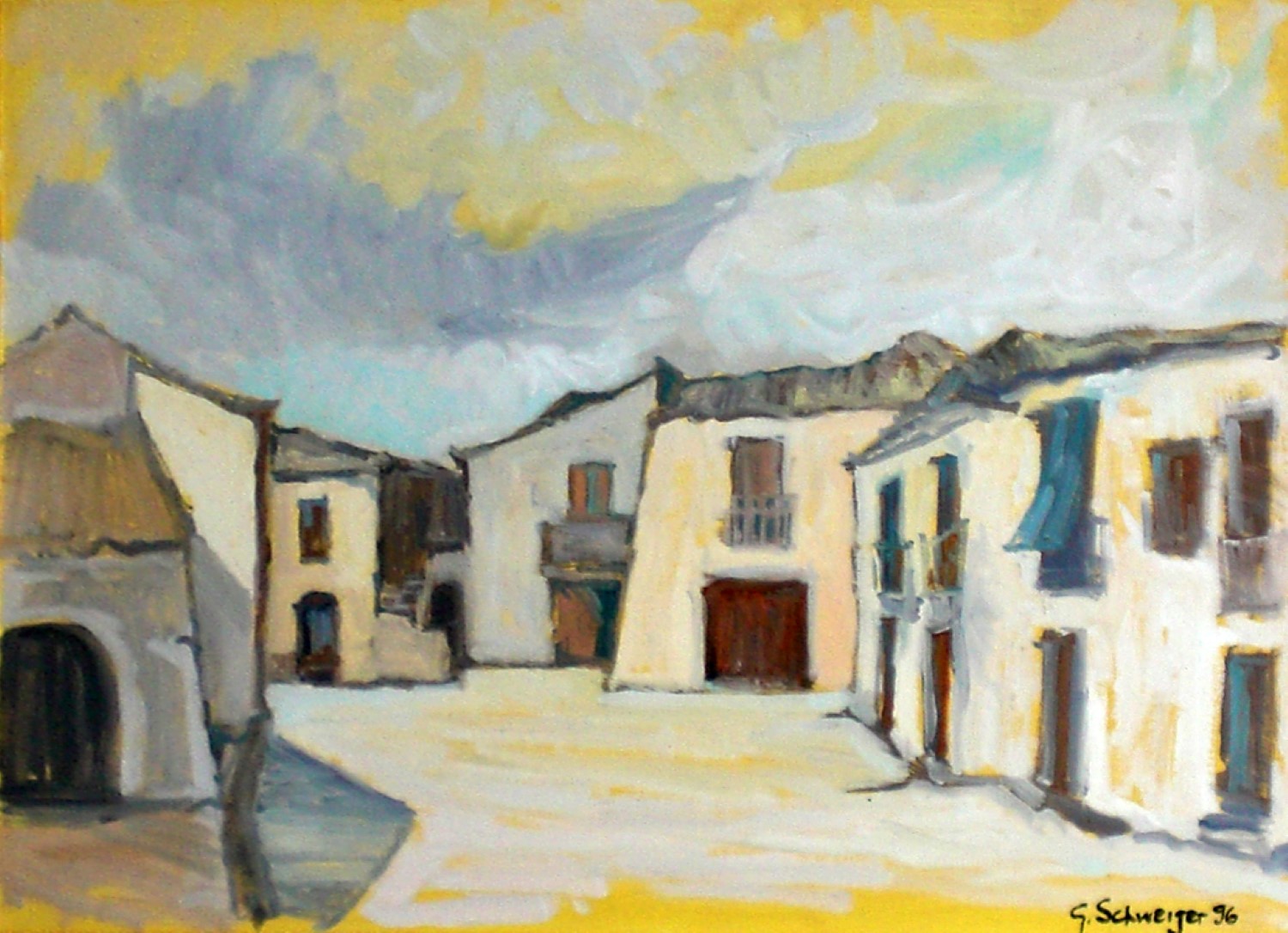 Case e chiesa a Zovalle olio '88