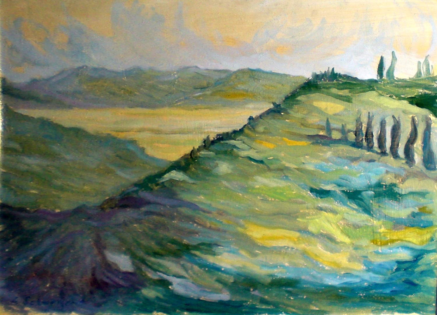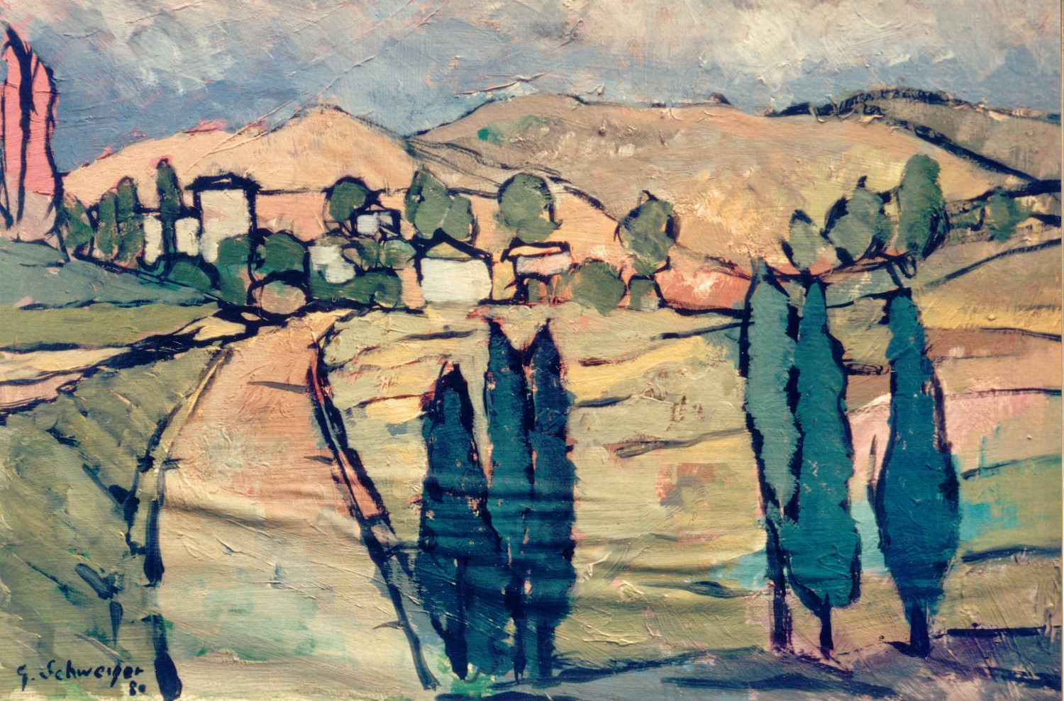 Cipressi istriani 50x30 olio '85